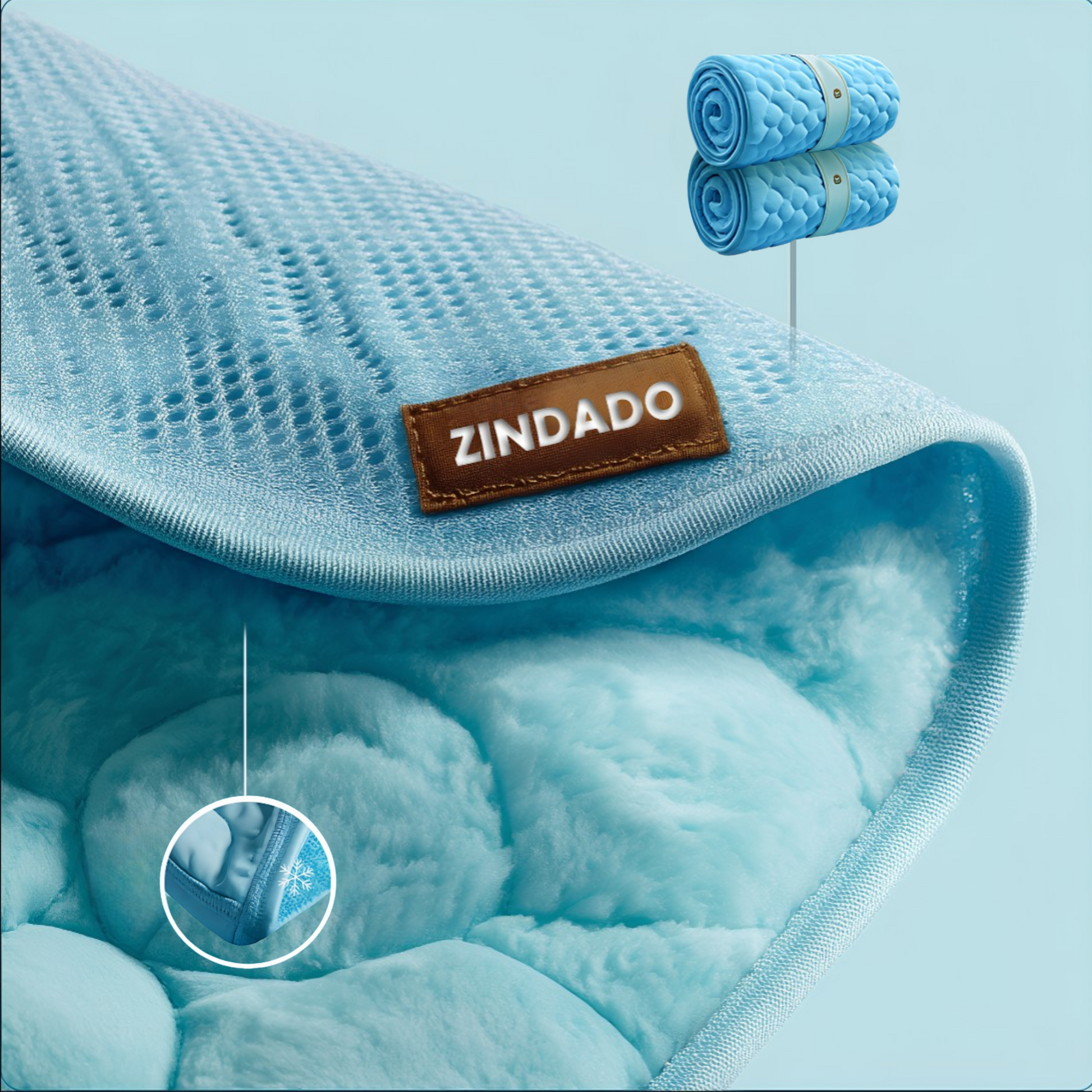 Vermeide Unwohlsein und Überhitzung dank der Zindado Kühlmatte, hergestellt aus kühlender Ice-Silk-Faser.
